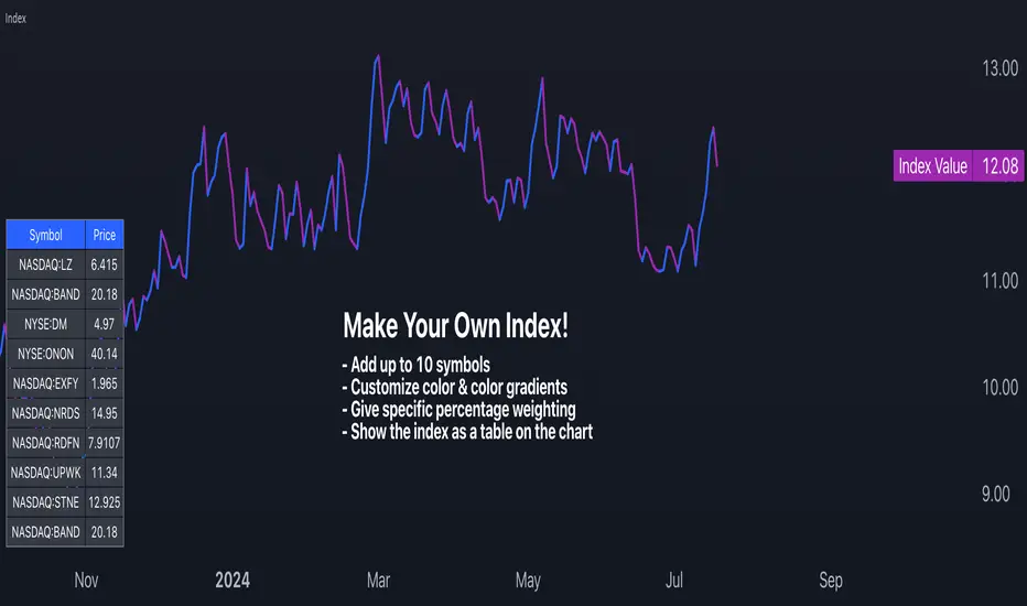This script has been updated to accomplish several important goals:1. I added a new feature that lets you show the price of every symbol in your index. So, if you wish, you can watch your index and the prices update in a table. You can toggle this on or off in the settings menu.