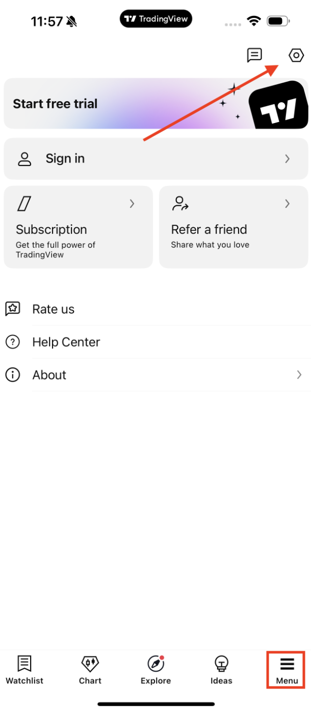 - Toque no botão com o ícone de engrenagem no canto superior direito;