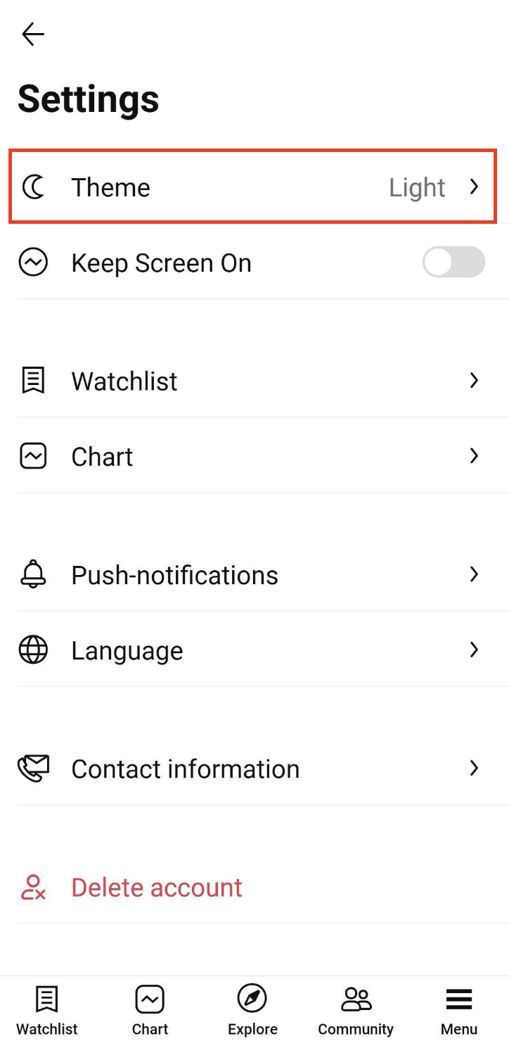 - Selecione Claro ou Escuro;