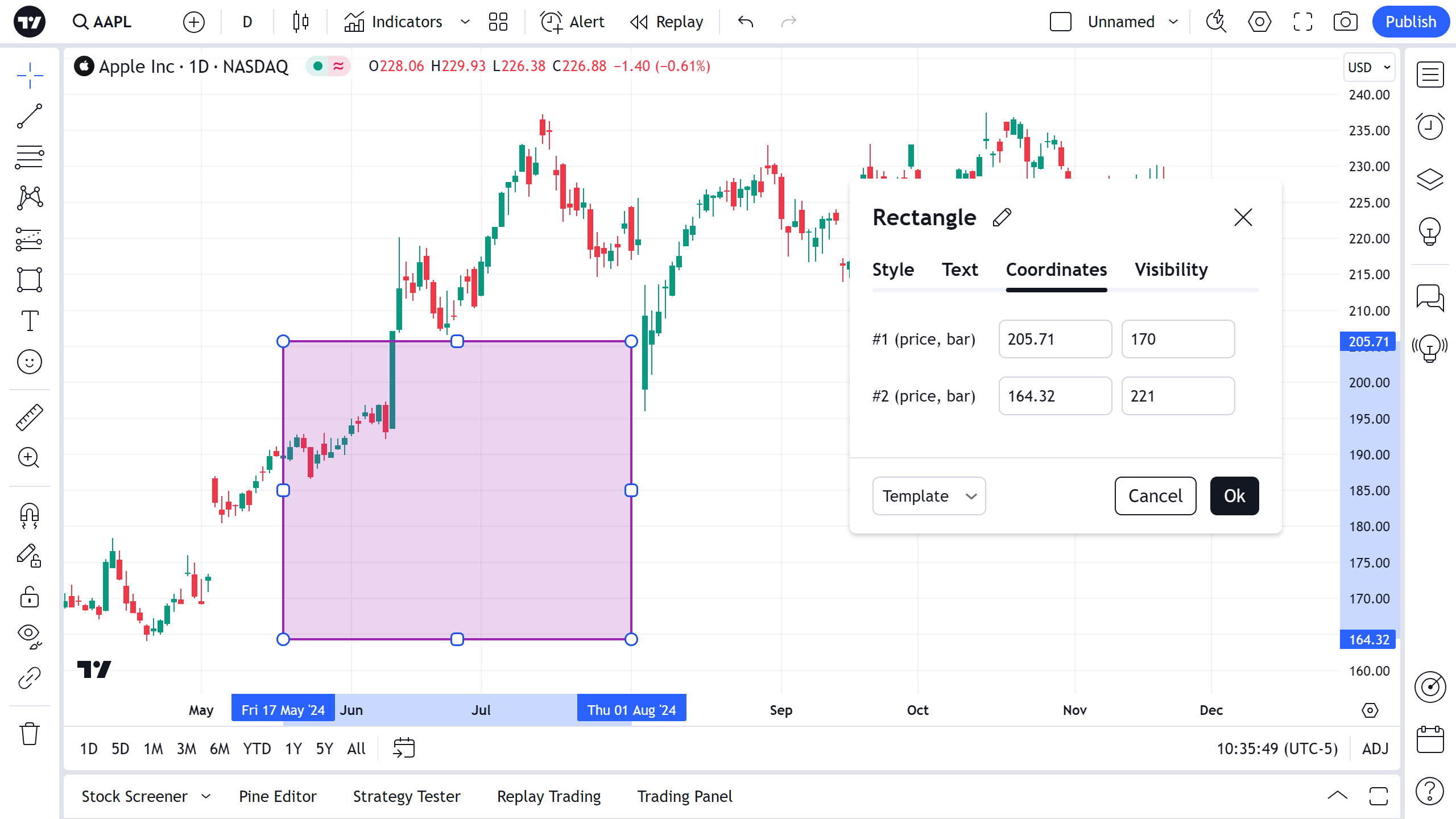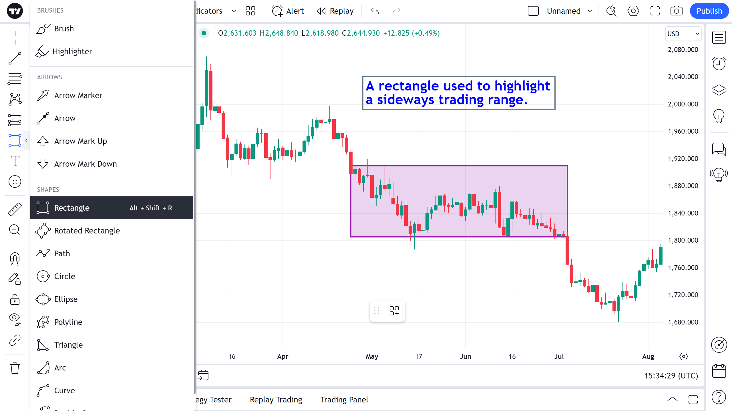 Esta é uma ferramenta simples para desenhar retângulos em um gráfico. É geralmente usada para destacar uma área de alto interesse.