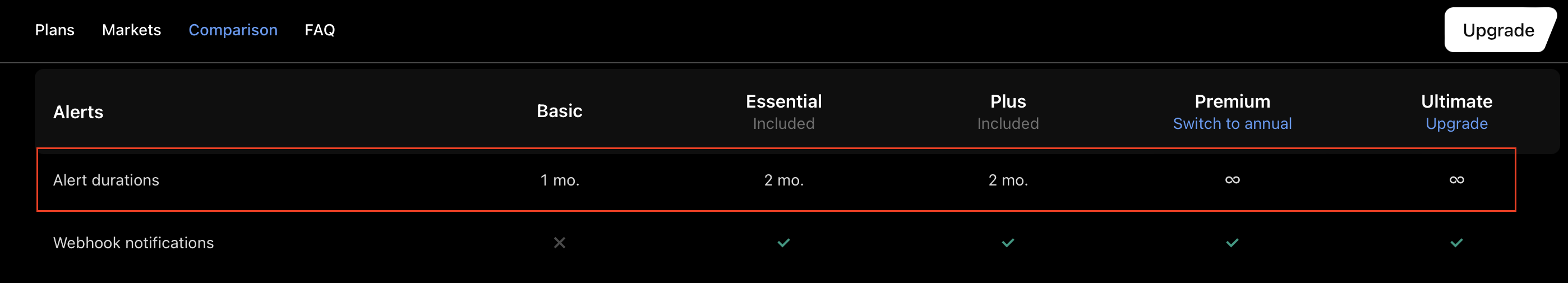 NOTE! Alertas que não expiram estão disponíveis apenas para o plano Premium e Ultimate!