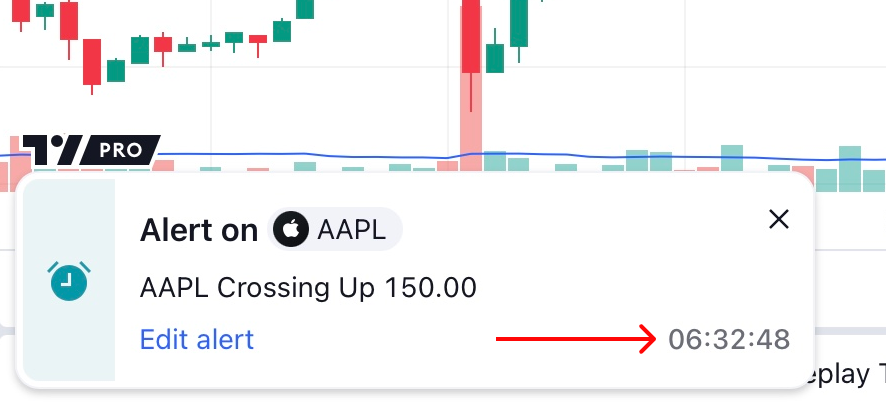 Na notificação pop-up do alerta, a hora é exibida no fuso horário de seu sistema operacional.