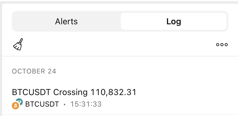 No log de alertas, a hora também é exibida no fuso horário do seu sistema operacional.