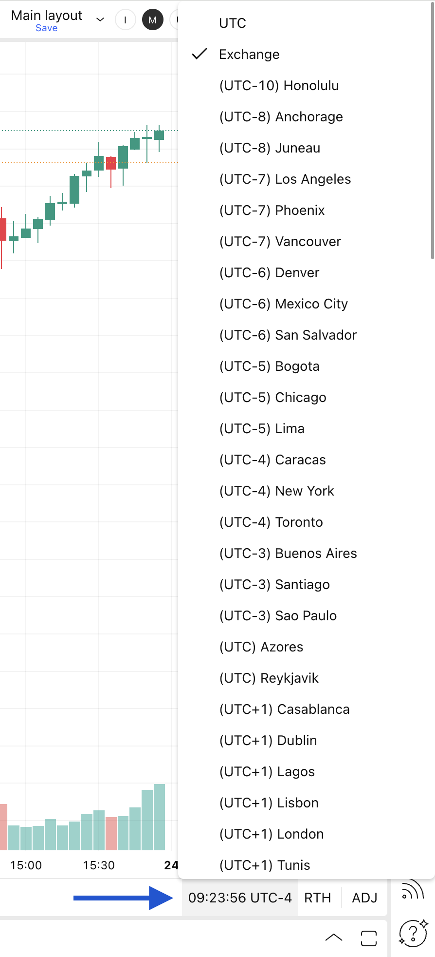 O fuso horário do gráfico pode ser alterado e sincronizado com o horário do seu sistema operacional. É preciso observar que a configuração não afeta de forma alguma os alertas.