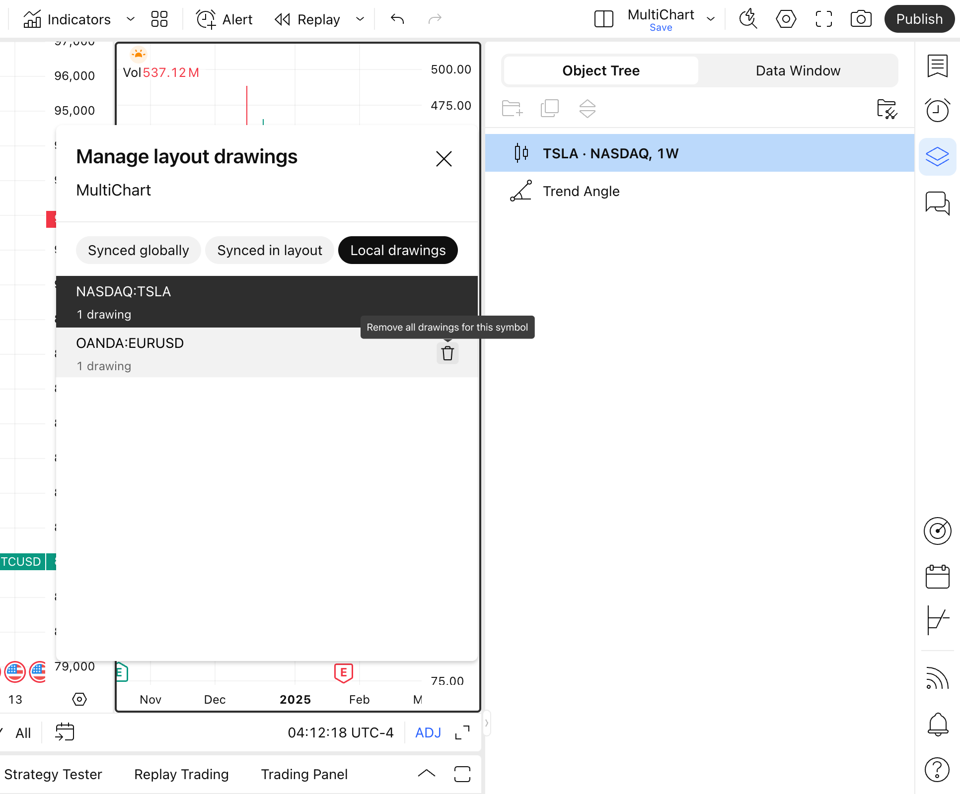 As ferramentas de desenho podem ser sincronizadas entre os gráficos do layout ou globalmente, dependendo do modo selecionado.