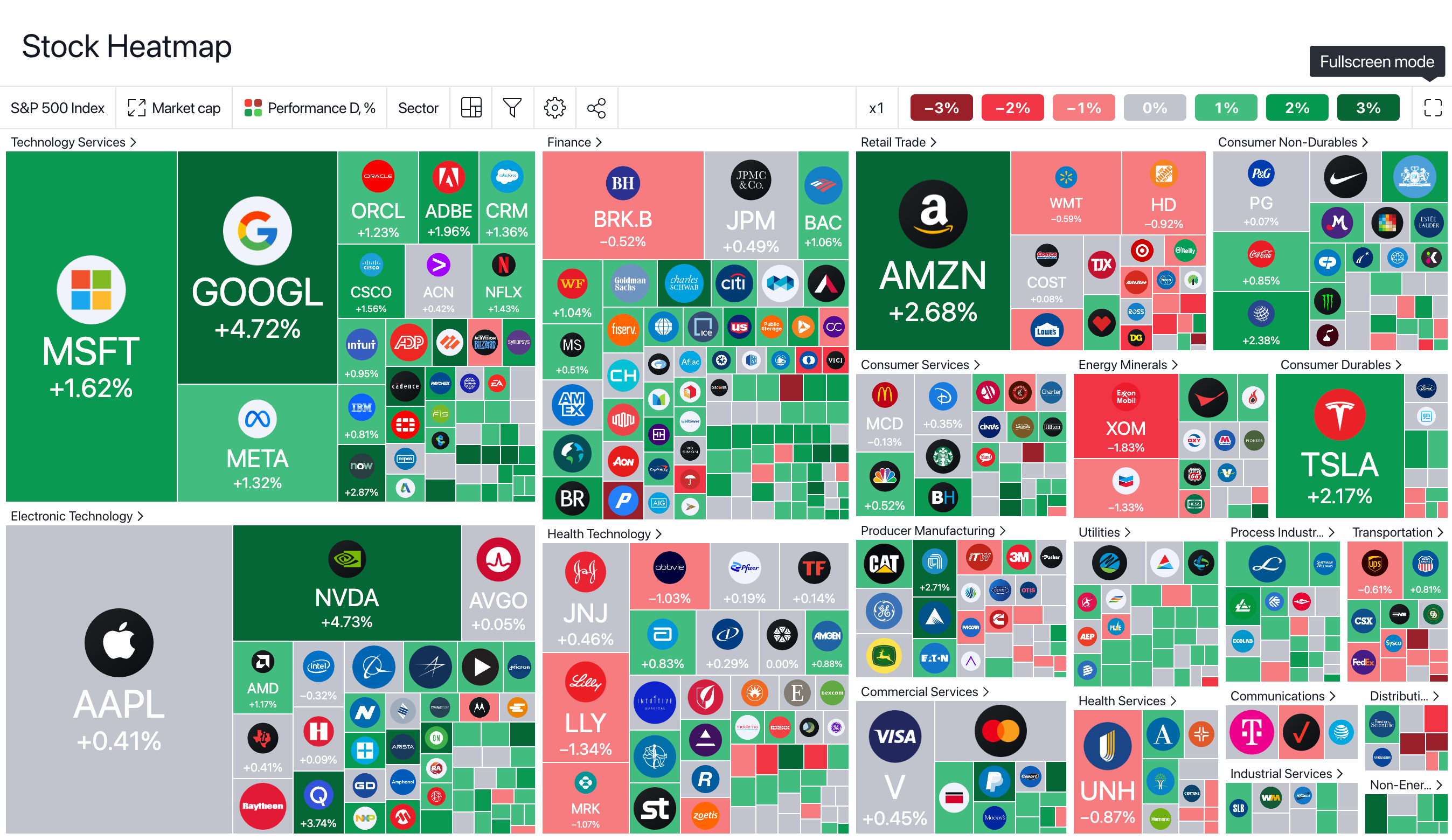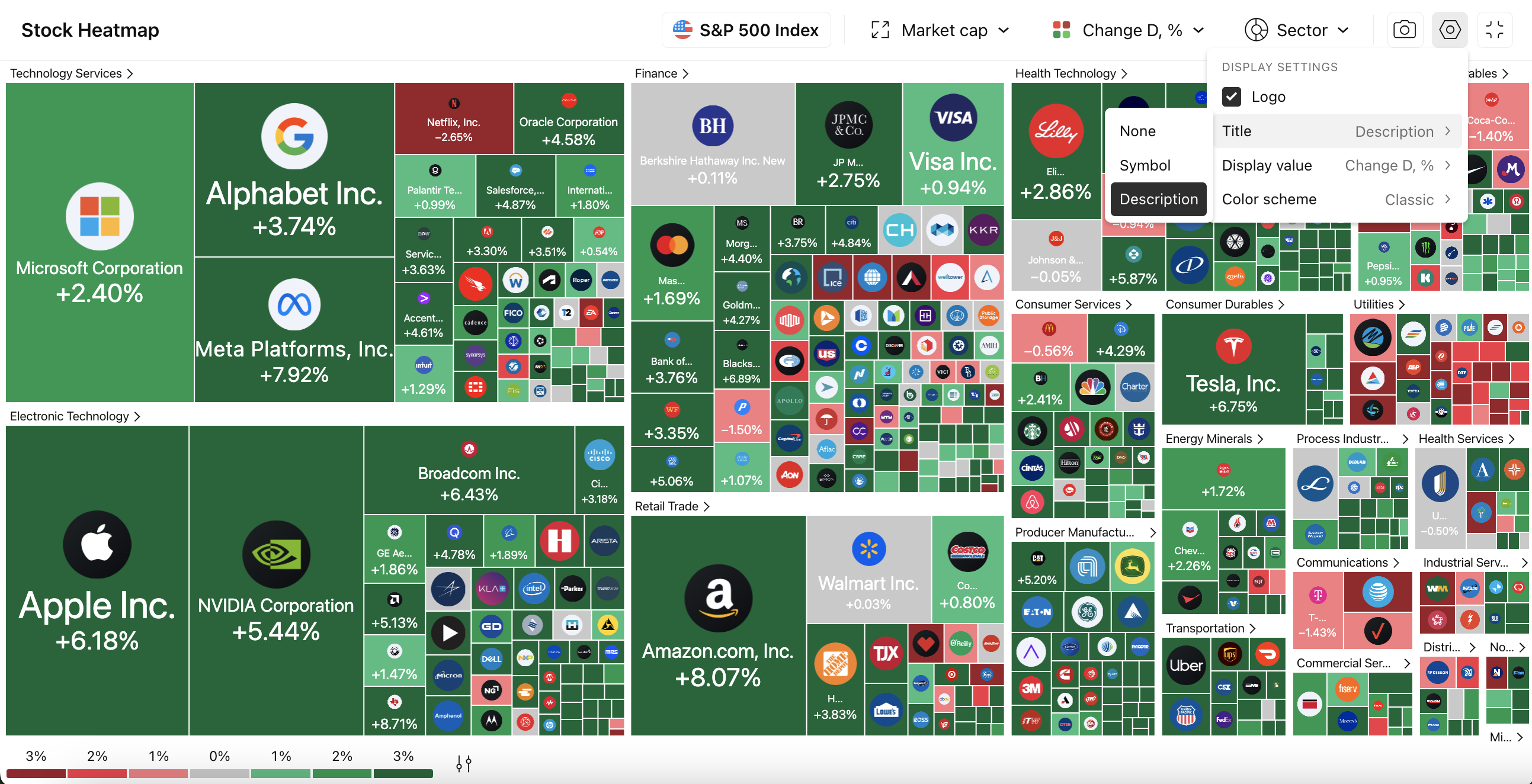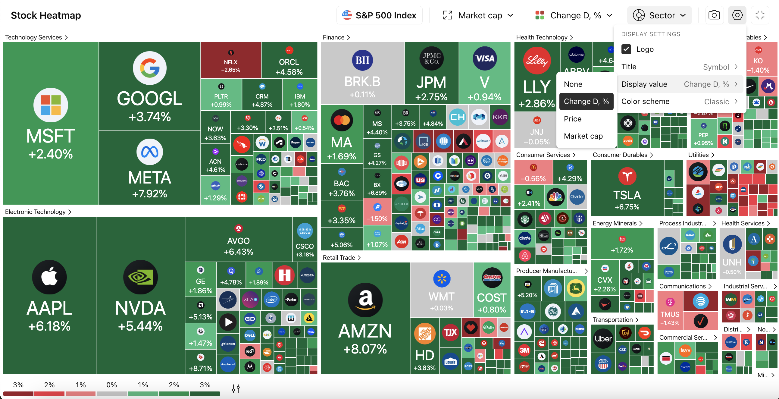 Há uma configuração de agrupamento no Mapa de Calor de ações: ao selecionar o modo Sem grupo, os símbolos do mapa de calor não são agrupados por setores.