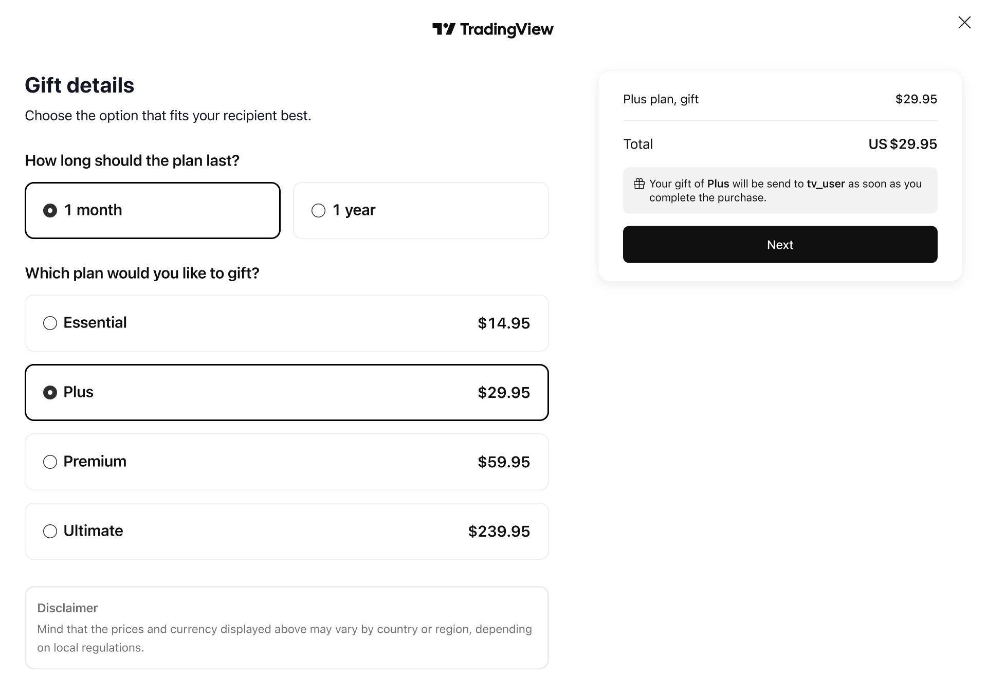 Observe que apenas usuários gratuitos podem receber assinaturas oferecidas. Se o usuário que você deseja presentear não puder receber uma assinatura no momento, você verá uma notificação pop-up.