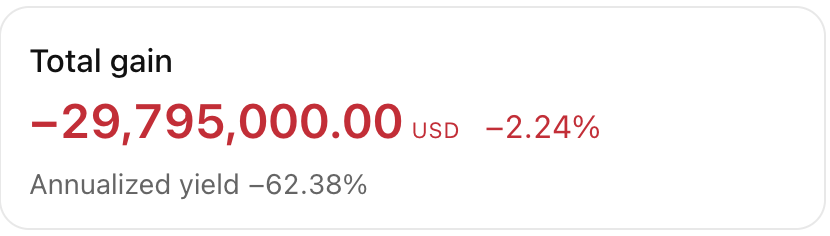 For details on calculating Annualized yield for individual instruments in the Total holdings section of the Holdings tab, read here: Holdings page