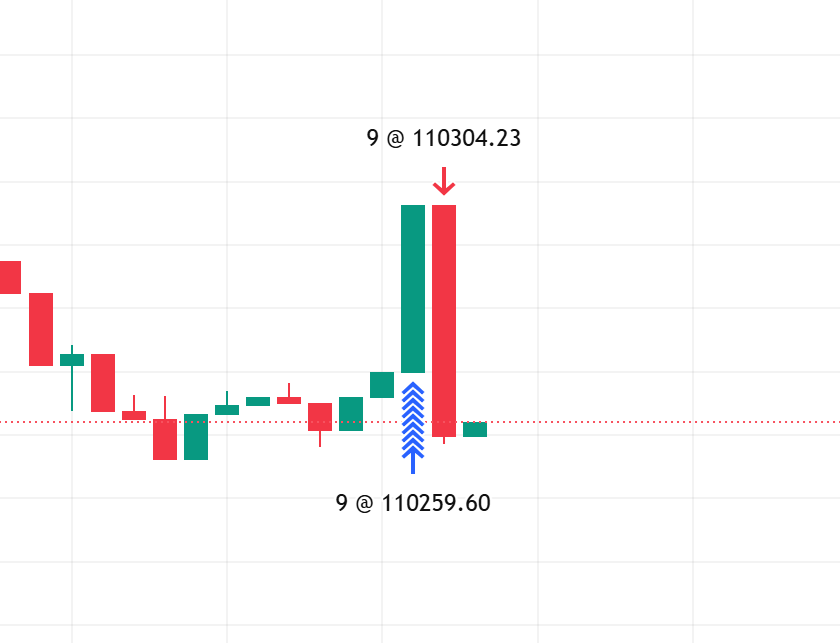 Esta configuração adiciona marcas visuais no gráfico nos pontos em que suas ordens foram executadas. Isso ajuda a ver claramente os níveis exatos de entrada e saída das suas negociações. Se houver muitas execuções, as marcas são agrupadas automaticamente.