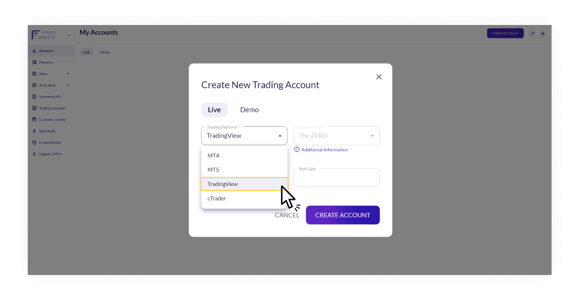 Eu recebo a mensagem de erro “Trader not found” na Fusion MarketsVerifique se criou uma conta para o TradingView com a corretora, seguindo o link.AnteriorAnteriorRecebo a mensagem de erro “Use seu número de conta e senha…PróximoPróximoPor que eu recebo o erro: "Falha no login"?Abrir Supergráficos